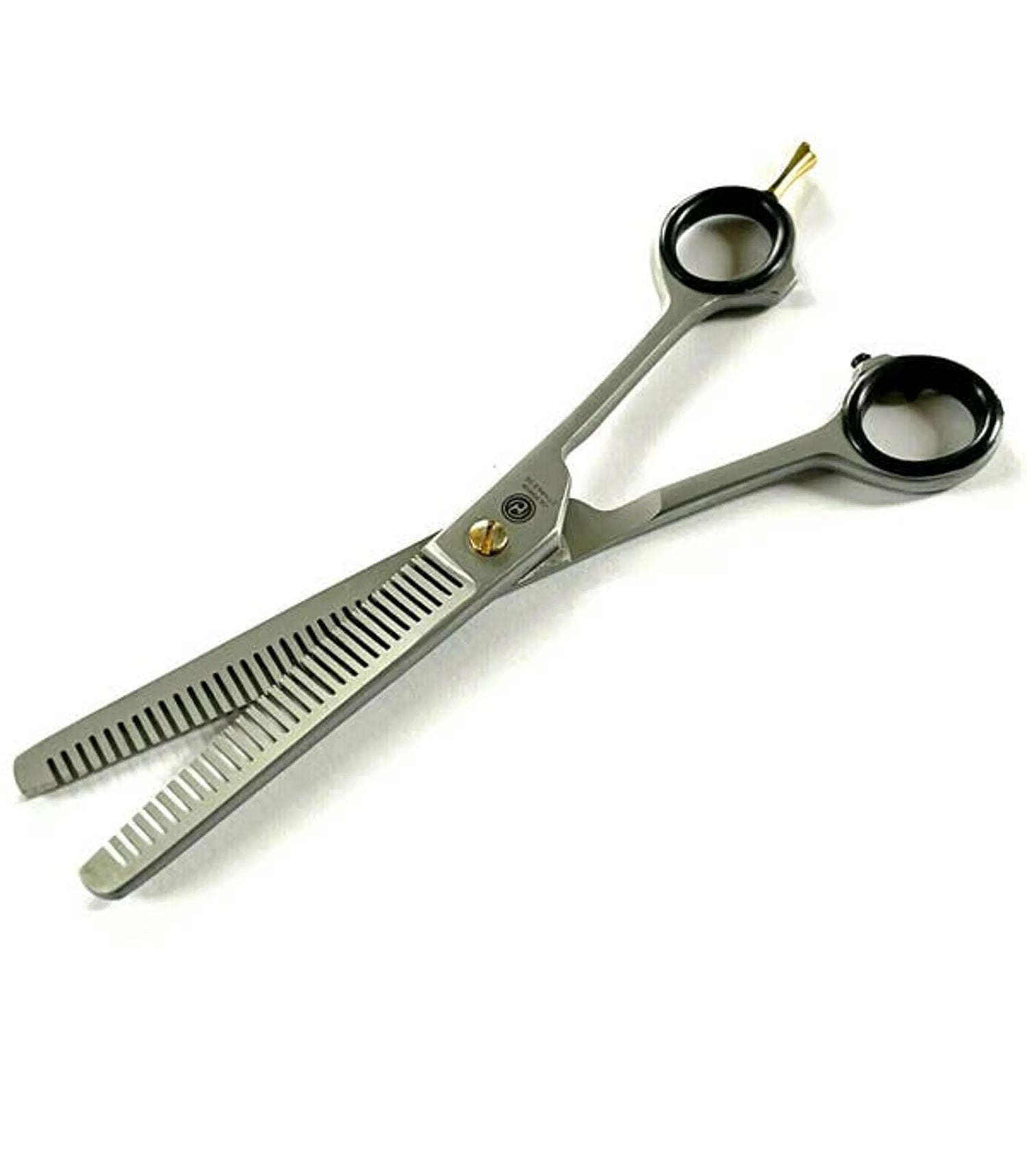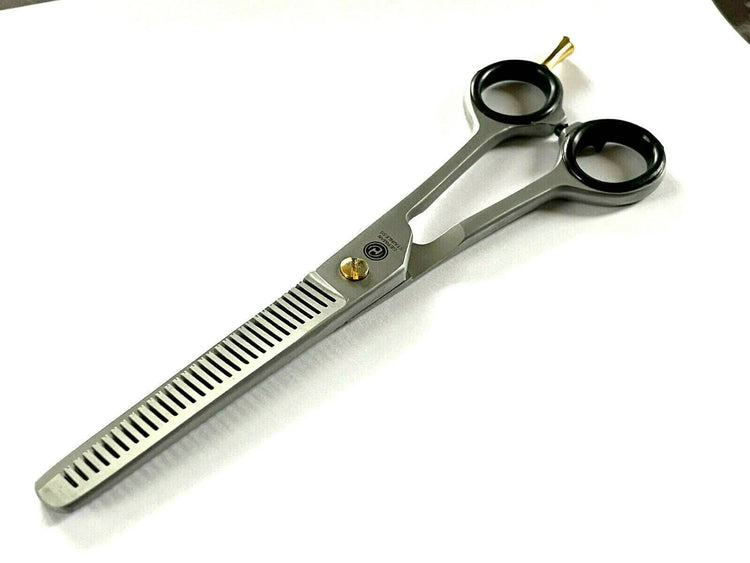 6.5" pet grooming double teeth trimming shears german stainless38-teethGerman stainless steelMade of 410-stainless steel which guarantees a long lasting razor cutting edgePerfect for pet groomingAlso can be used for household useFinger rings are included and removableComes with a plastic case to hold/protect your shears / scissors.
