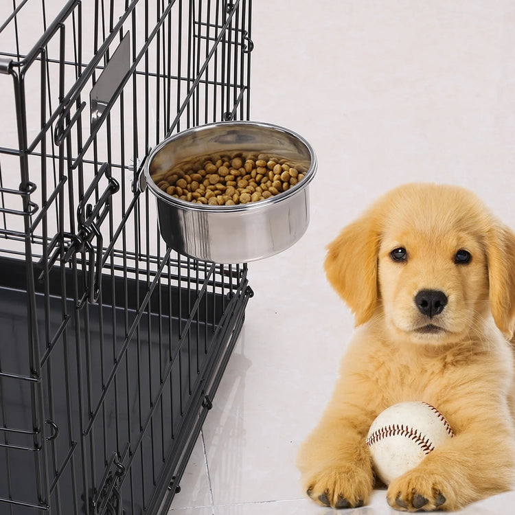 Are your dogs facing the problem that the bowl keeps moving while eating which makes feeding a bit trouble? No worry, now our crate dog bowl comes to fix this problem. Designed with a clamp holder, our crate dog bowl can be tightly fix our dog bowl onto dog cage, cat cage, bird cage or other pet cage to avoid any bowl's movement while your pet eating. Also, it's removable, so you are also able to detach it to use as a basic bowl, or to clean, fill up with food, or water. It's made of food-safe stainless steel materials, which is great in corrosion-resistant, heat-resistant performance, and super safe for your lovely pet. Go to have it, let your pet have enjoyable meals without catching up the moving bowl while eating.