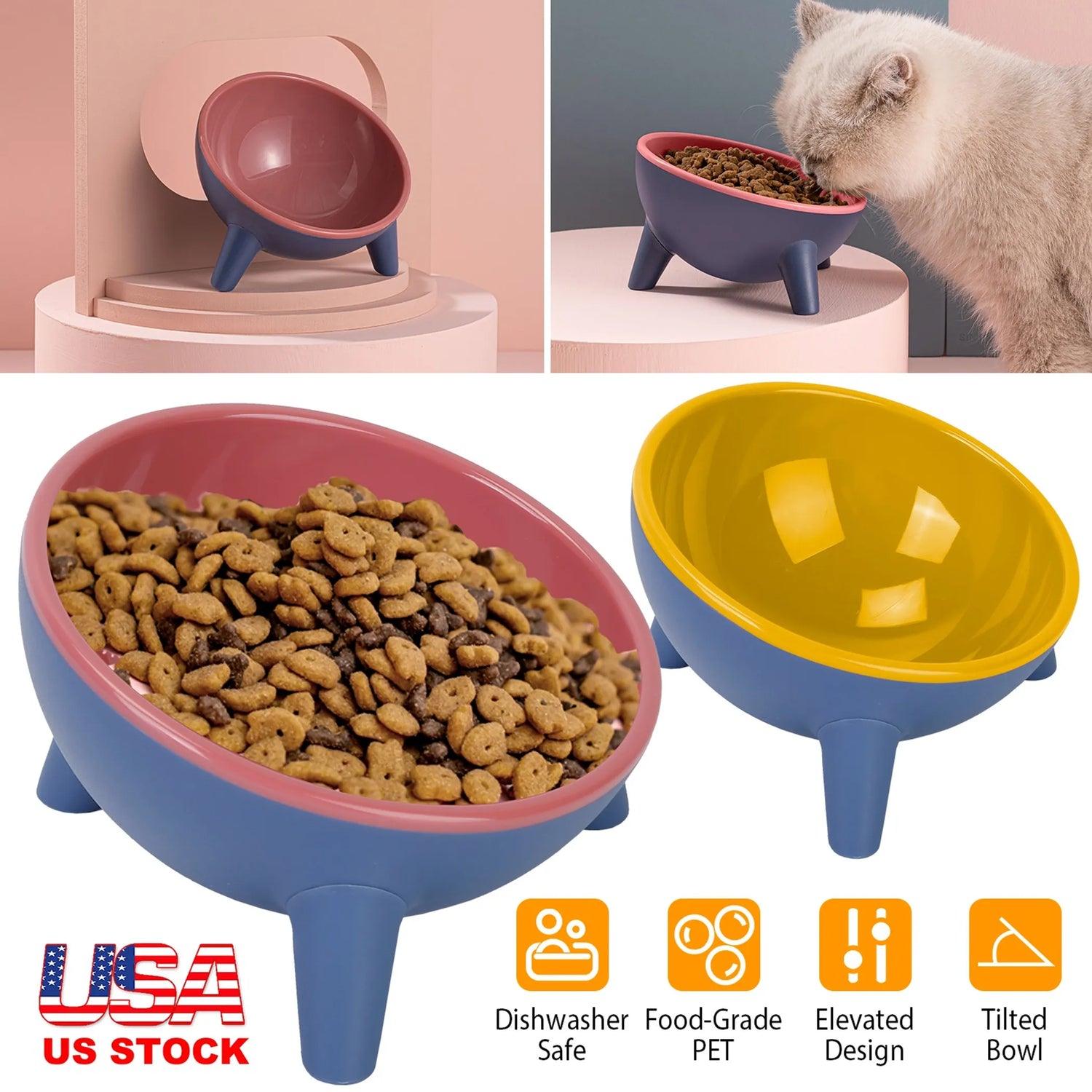 Every cat lovers will care for their cats' health, and I think you are one of them. Then this raised tilted elevated cats food bowl is a good choice for you! The elevated design helps cat swallow more easily and alleviate their occasional vomiting while tilted angle design keeps food fall to the center nicely, preventing food from being pushed off the bowl and offering easy eating for your pet. Made of premium PET material, safe for pet's eating and dishwasher friendly.